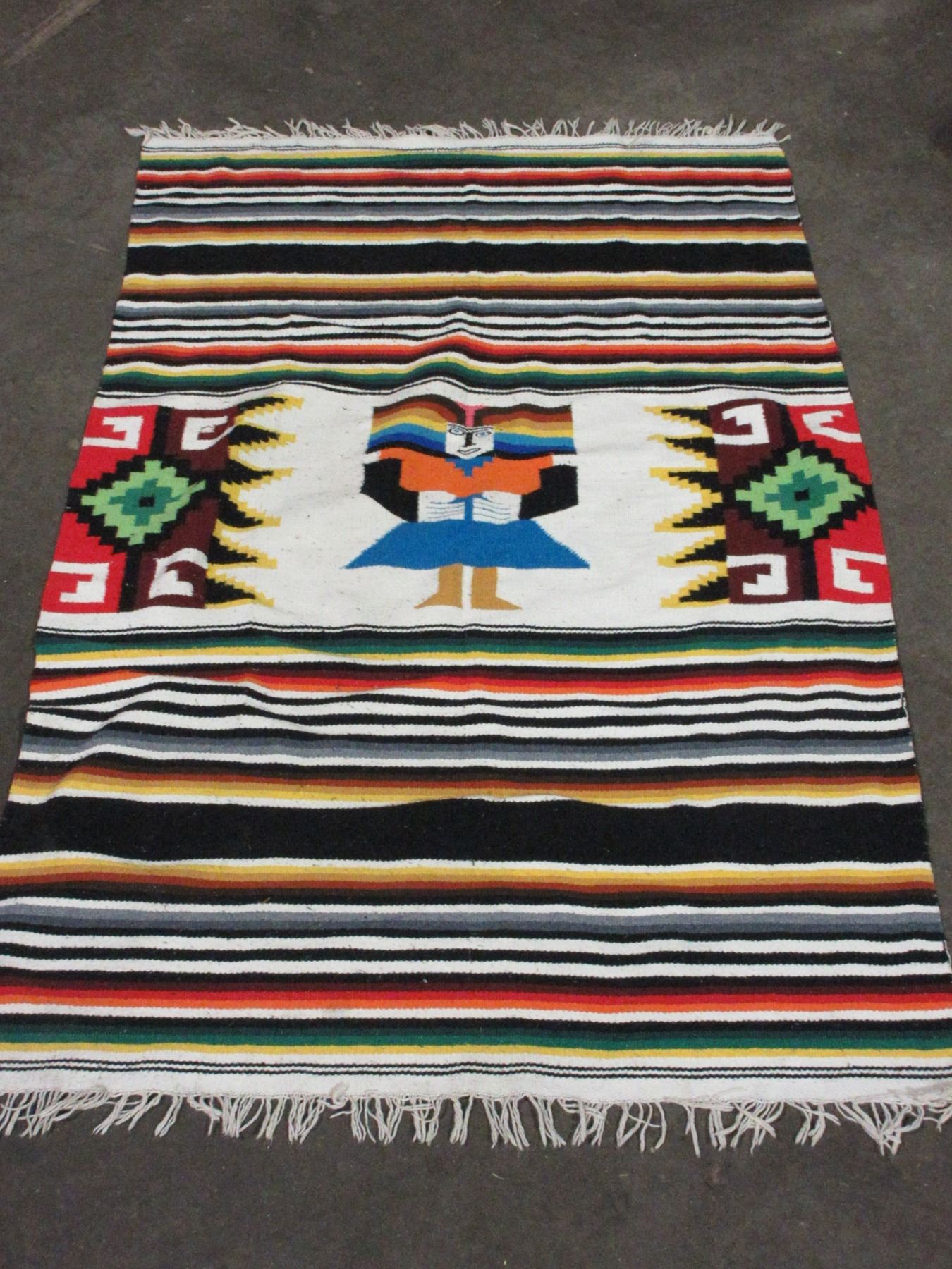 Mexican Style Rug- Fringed- 80" X 40"