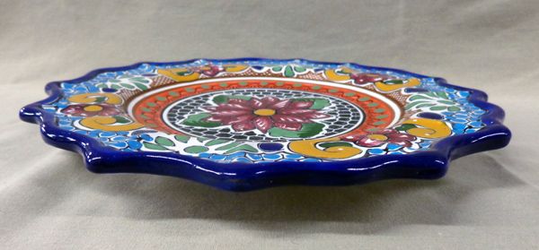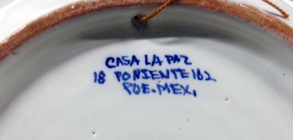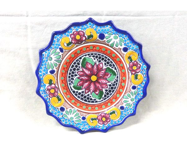 Mexican Talavera Ceramic Plate from Casa La Paz Puebla, Mexico, measures 9.5''D, scalloped edge, hanger for wall display, beautifully painted in Talavera tradition