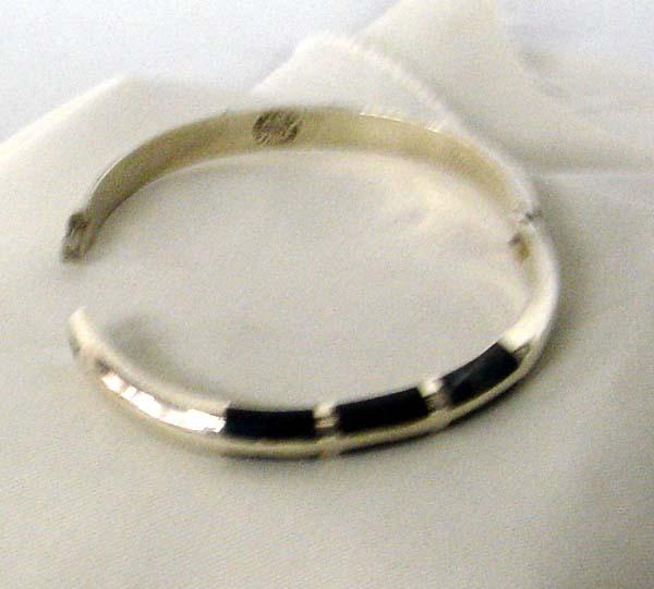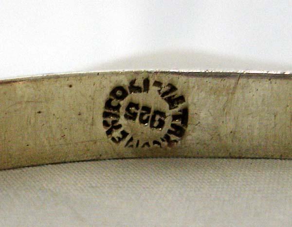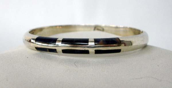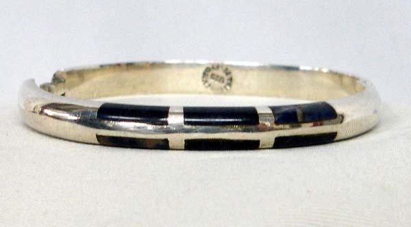 Mexican Taxco Silver & Lapis Inlay Bracelet. Stamped on inside ''Taxco Mexico 925.'' Measurement in Inches - Inside Length(Including Opening)/Width is 7x0.375. Buyers Pay Actual Shipping and Handling Charges(see terms and conditions for more information).