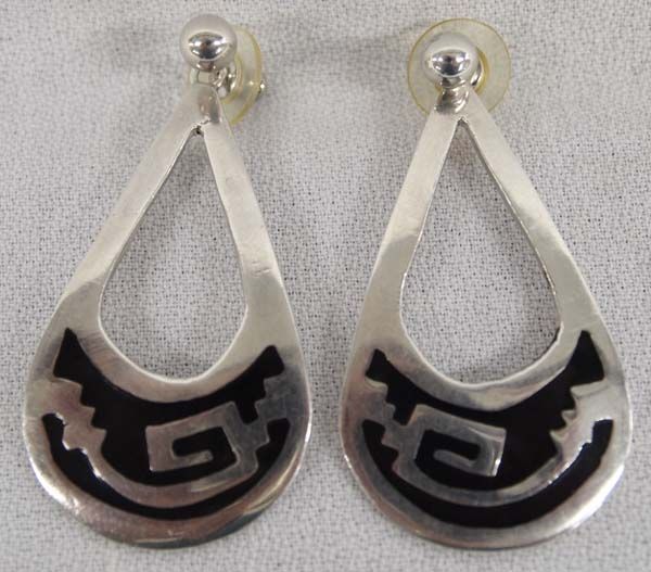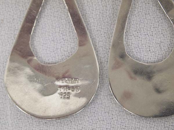 Elegant Mexican Taxco Silver Loop Earrings, marked Mexico TM-96 925, measure 2.5''L x 1''W, enamel on sterling, 17.5g in total wt.