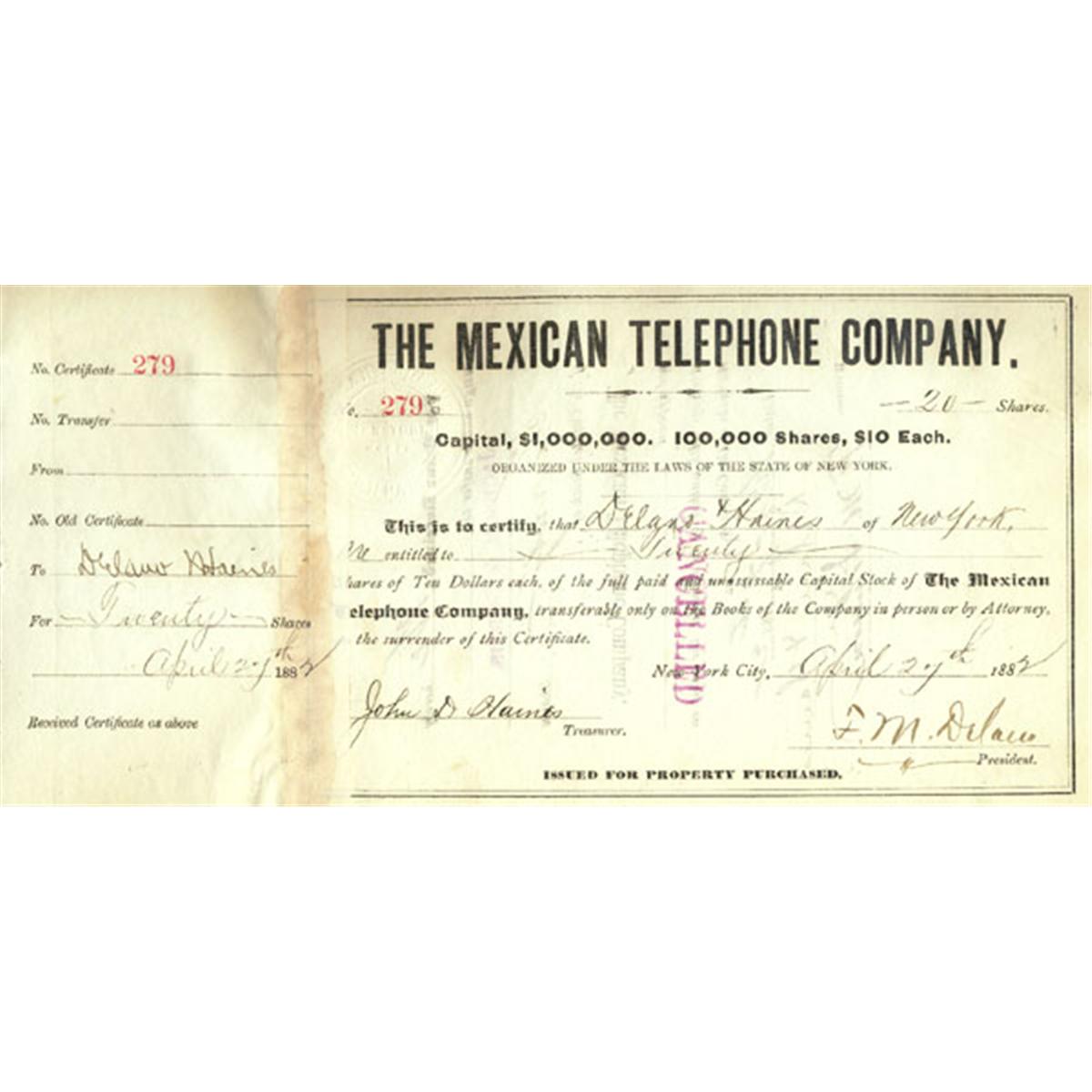1882, New York. Stock certificate for 5 shares. Black. Stamp cancelled. Very fine.
