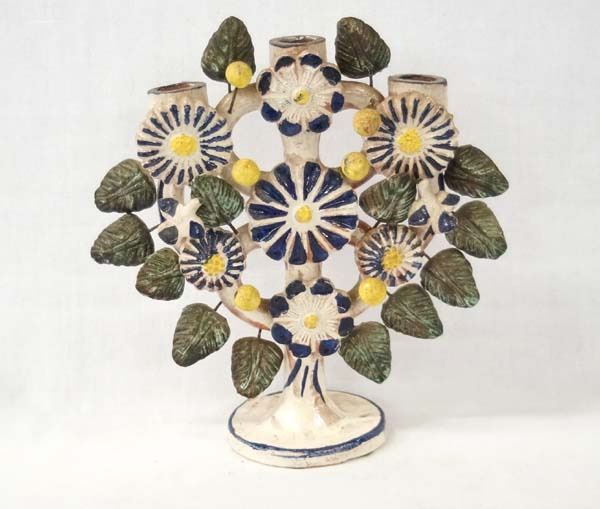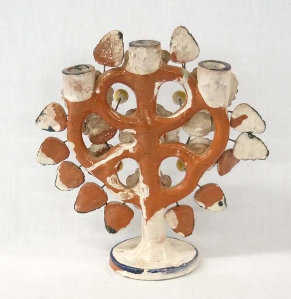 Vintage Mexican Terra Cotta Tree of Life Candelabra, measures 4'' x 10'' x 10''