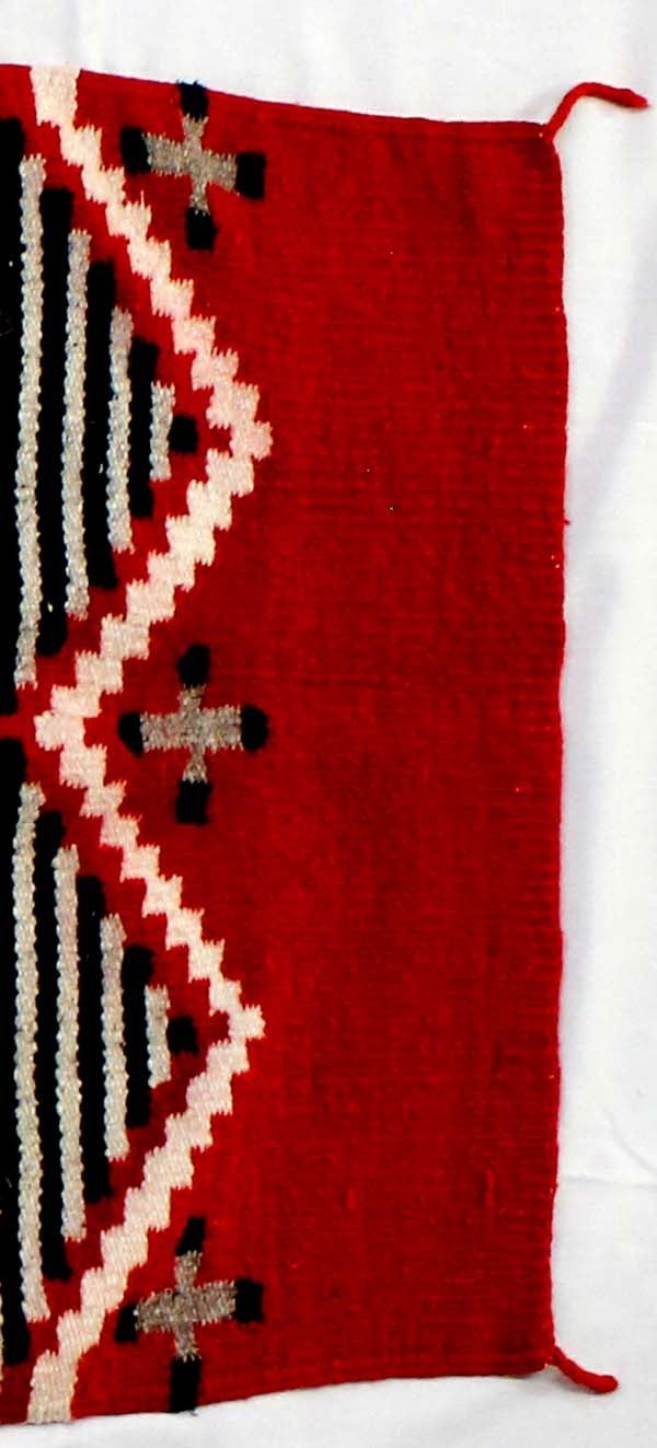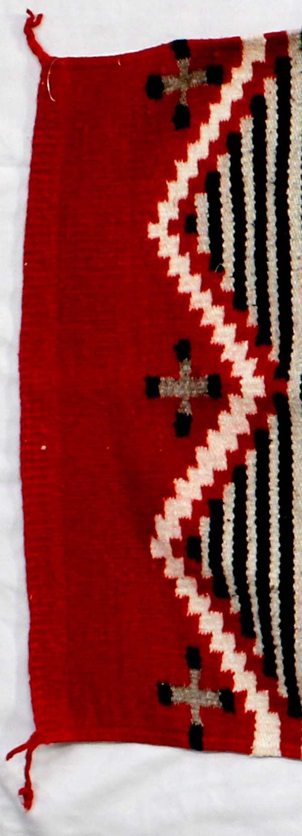 Mexican Textile Rug, measures 27'' x 58'', striped diamond patterns, 4 cornered tassels intact