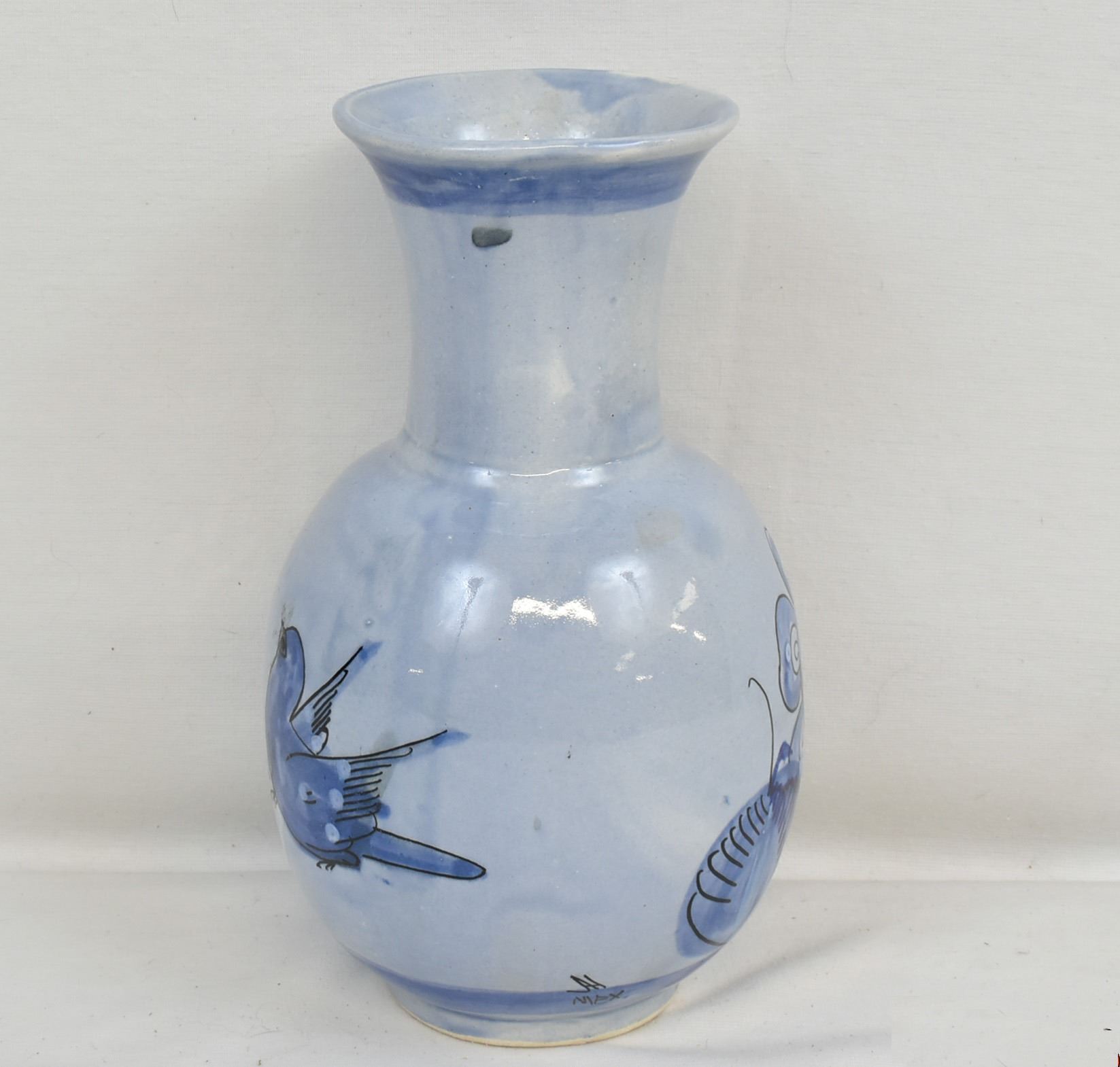 Mexican Tonala Glazed Pottery Vase, measures 9.75"H x 6"D