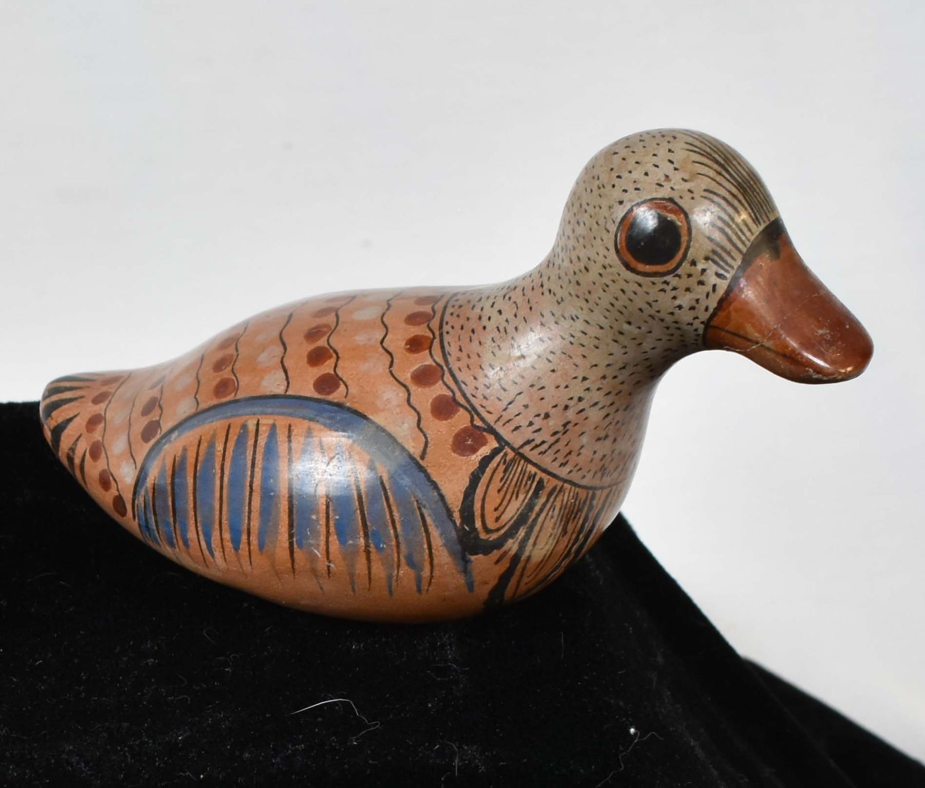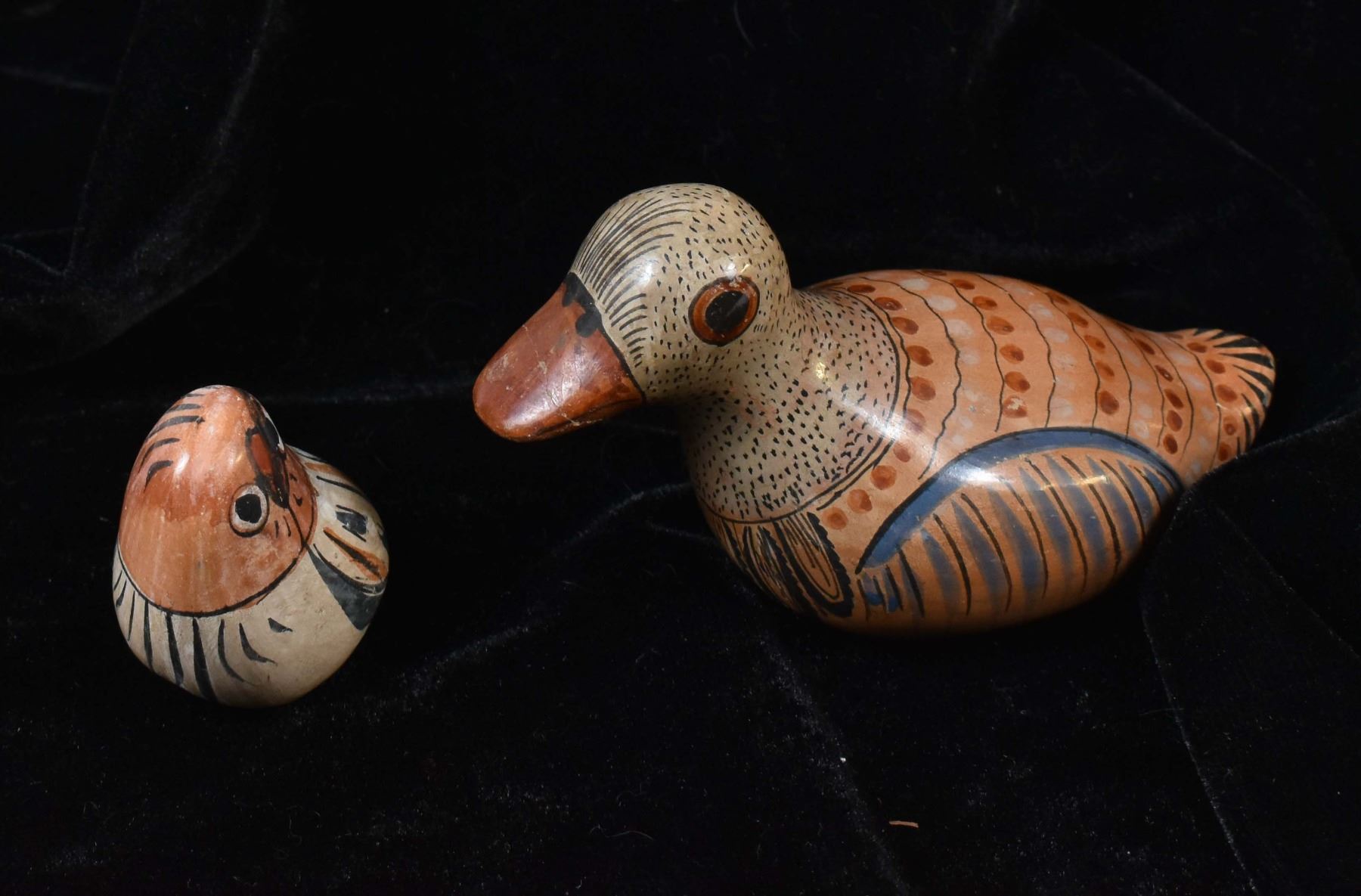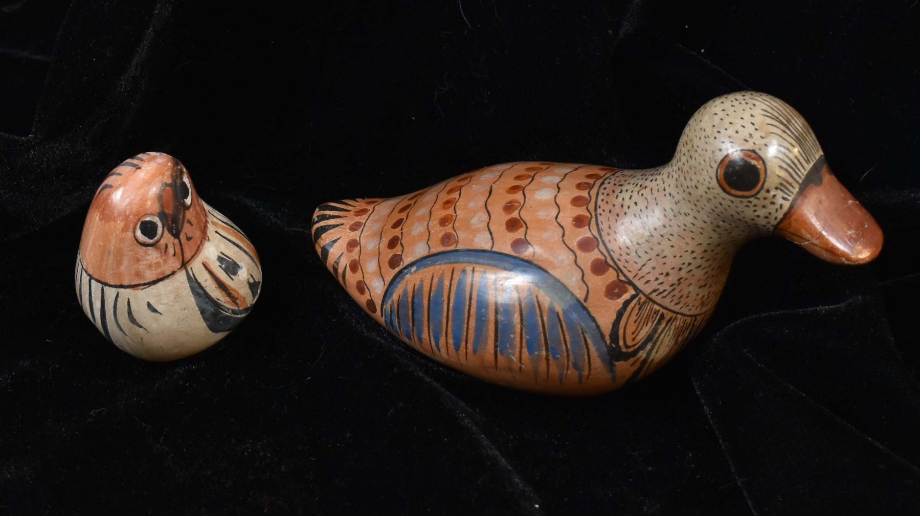Mexican Tonala Pottery Duck and Owl, largest is the duck measuring 3'' x 5''
