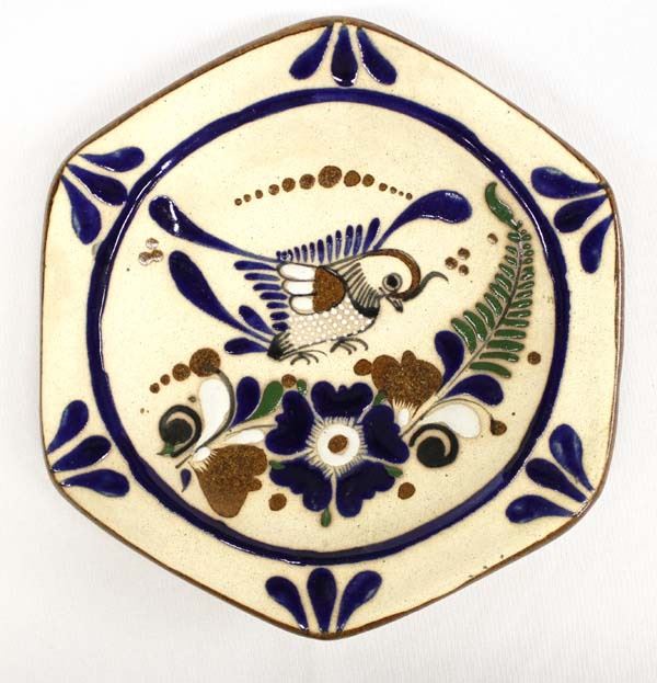 Beautiful Mexican Tonala Pottery Plate, measures 1''H x 8''D and can be hung on the wall to display