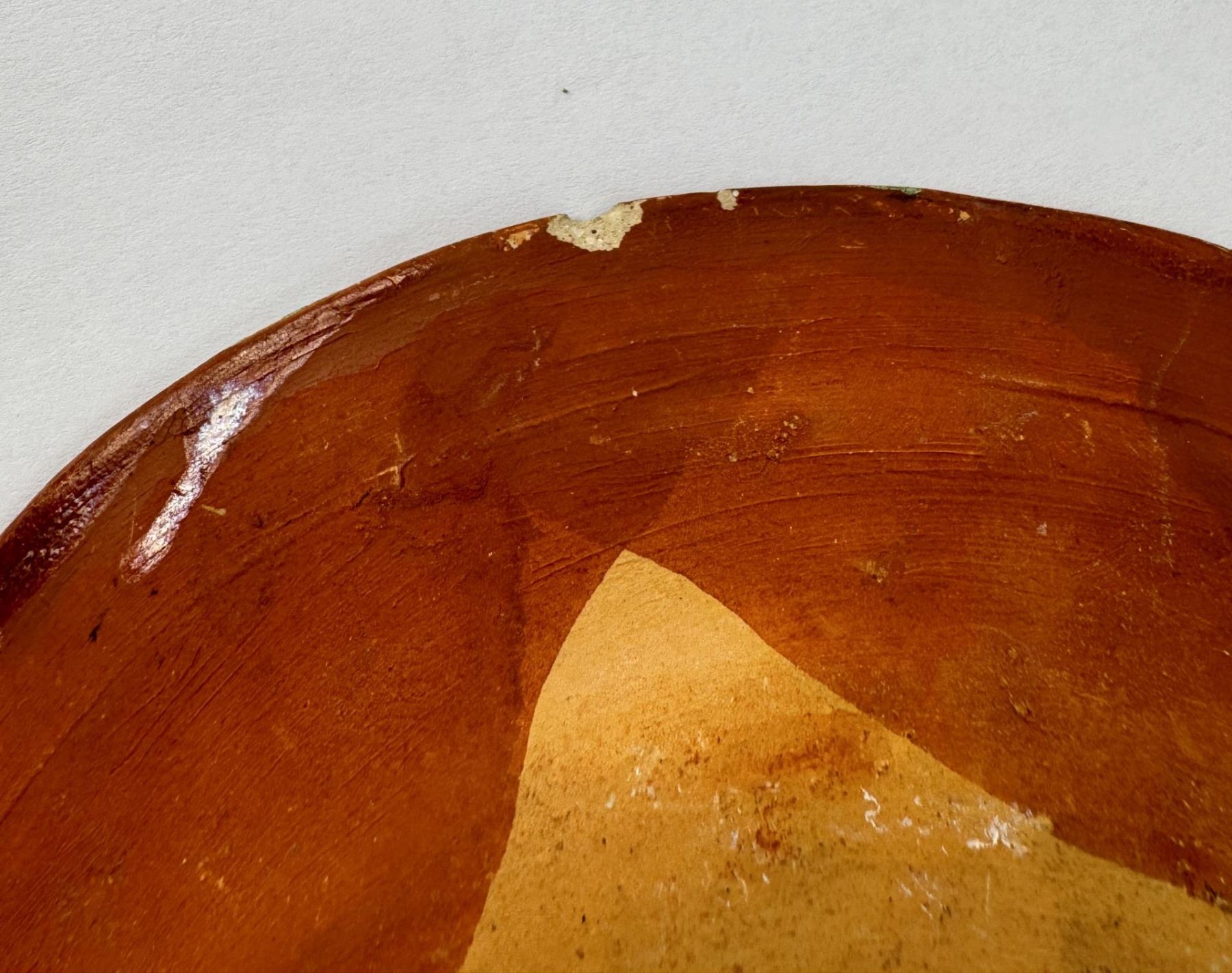 9" diameter. Chip on backside as shown.