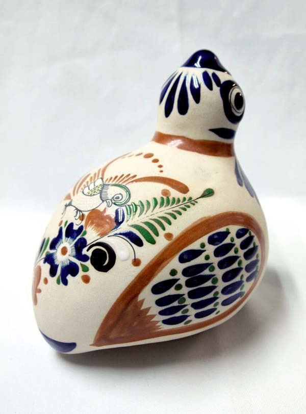 Mexican Tonala Pottery Quail, measures 7''L x 7.25''H x 6.5''W, small nip underneath