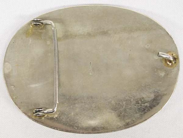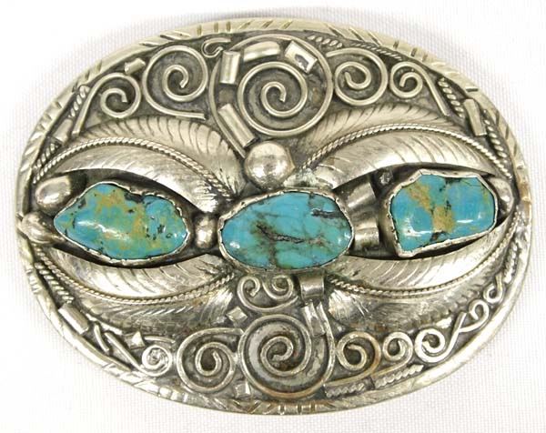 Mexican Turquoise Belt Buckle, buckle is stamped .925 however it did not test as sterling, measures 3.75''L x 2.75''W, 76.29g in total wt.