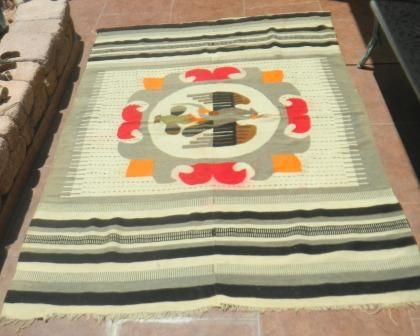 Mexican Weaving Great color. Measures 73 by 53 inches. This item depicts Mexican emblem with Eagle and serpent 1920. Fair Condition with some bleeding and some stains Shipping $20.00