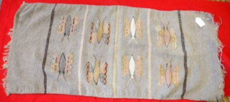 Mexican Weaving, Both ends are frayed, measures 24 by 50 inches. This has butterfly design
