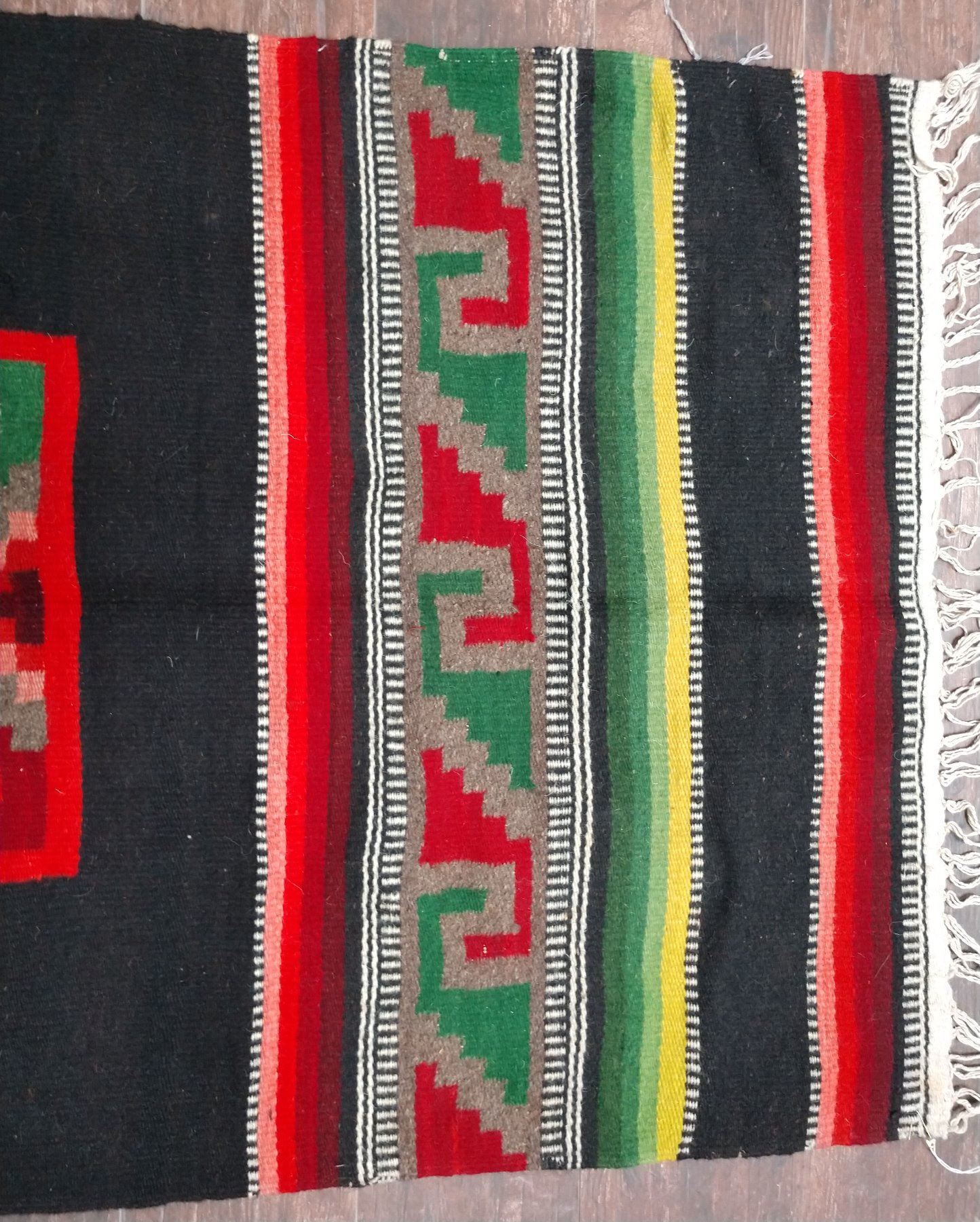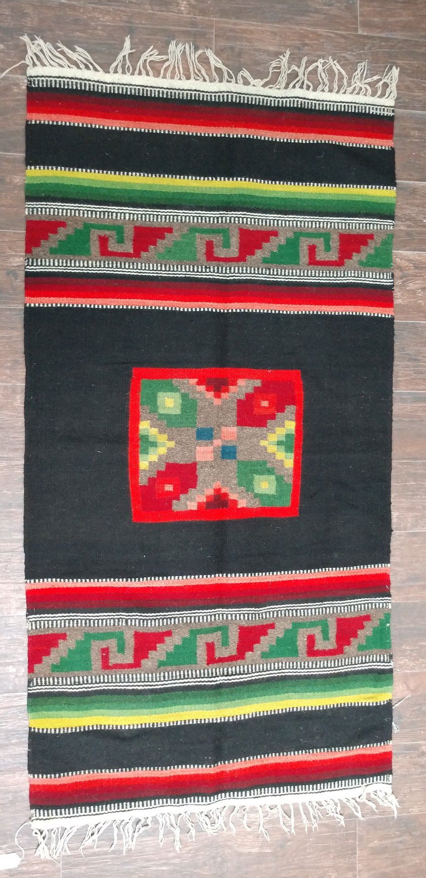 Mexican Weaving, c. 1940s. Made of wool, the item measures 58" x 30". Mexico. Condition: Good, see images. Shipping: $20.00 w/insurance and signature.