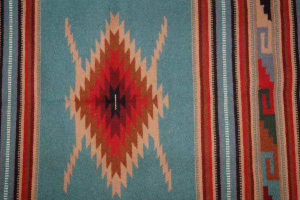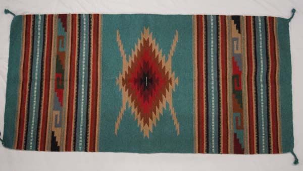 Mexican Wool Rug, measures 36'' x 64'', beautiful colors, 4 cornered tassels intact