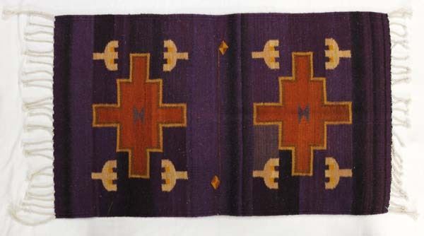 Mexican Cross and Saguaro Wool Textile Rug, fringed ends, measures 43''L x 22''W (includes fringe), beautiful rich colors