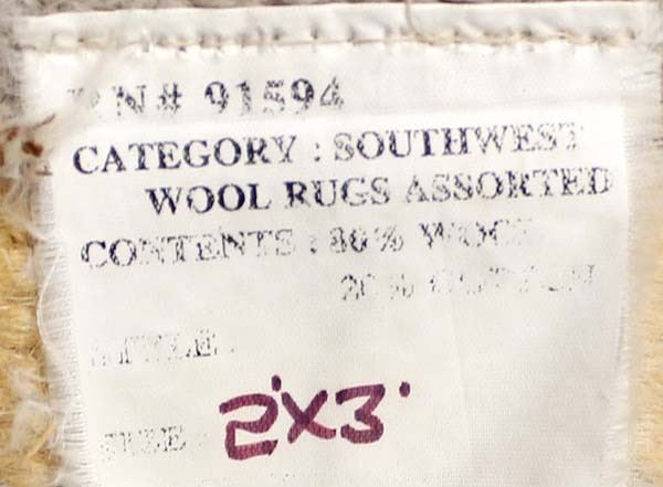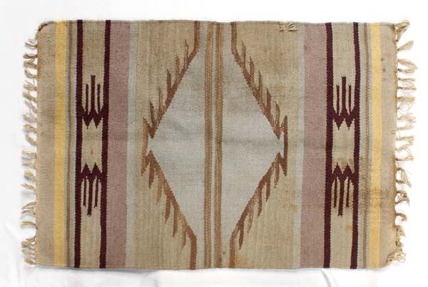 Mexican Wool Textile Rug, measures 24'' x 39'', stained, selvage damage