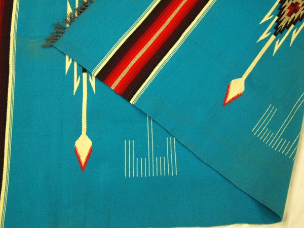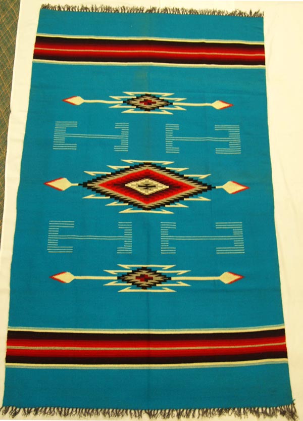Mexican Texcoco Wool Weaving. Measures 82''x49'' without fringe. Buyers pay actual shipping and handling charges (see Terms and Conditions for more information.)