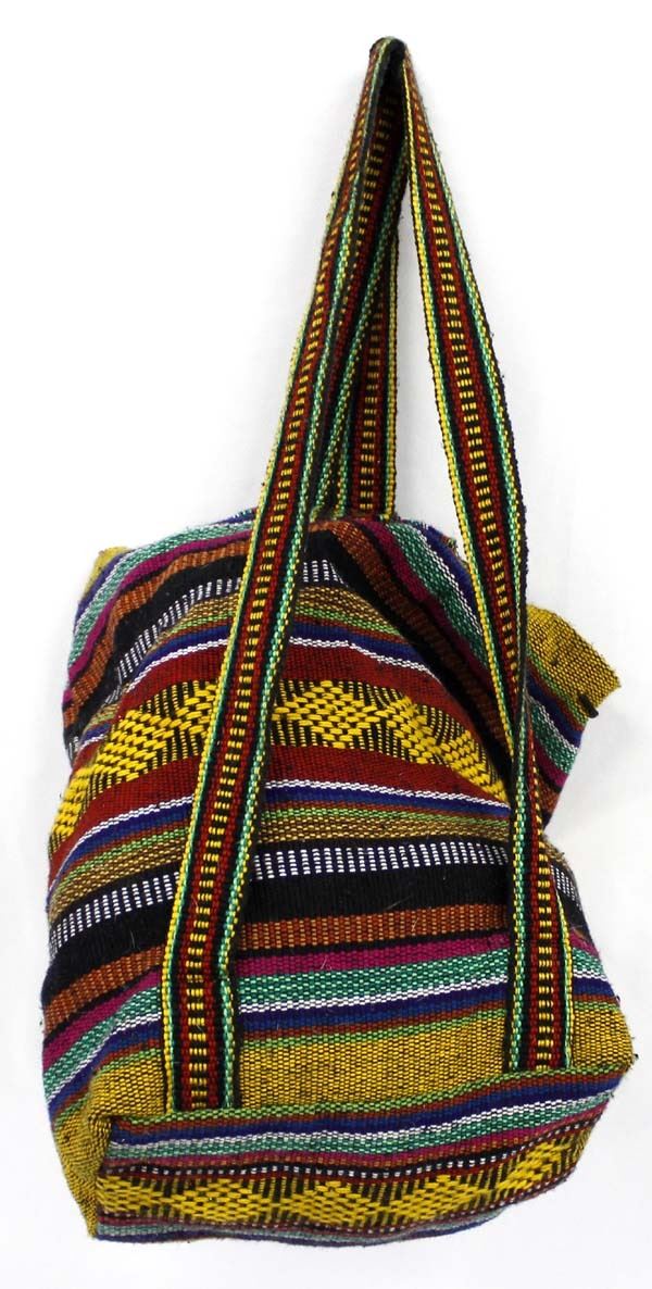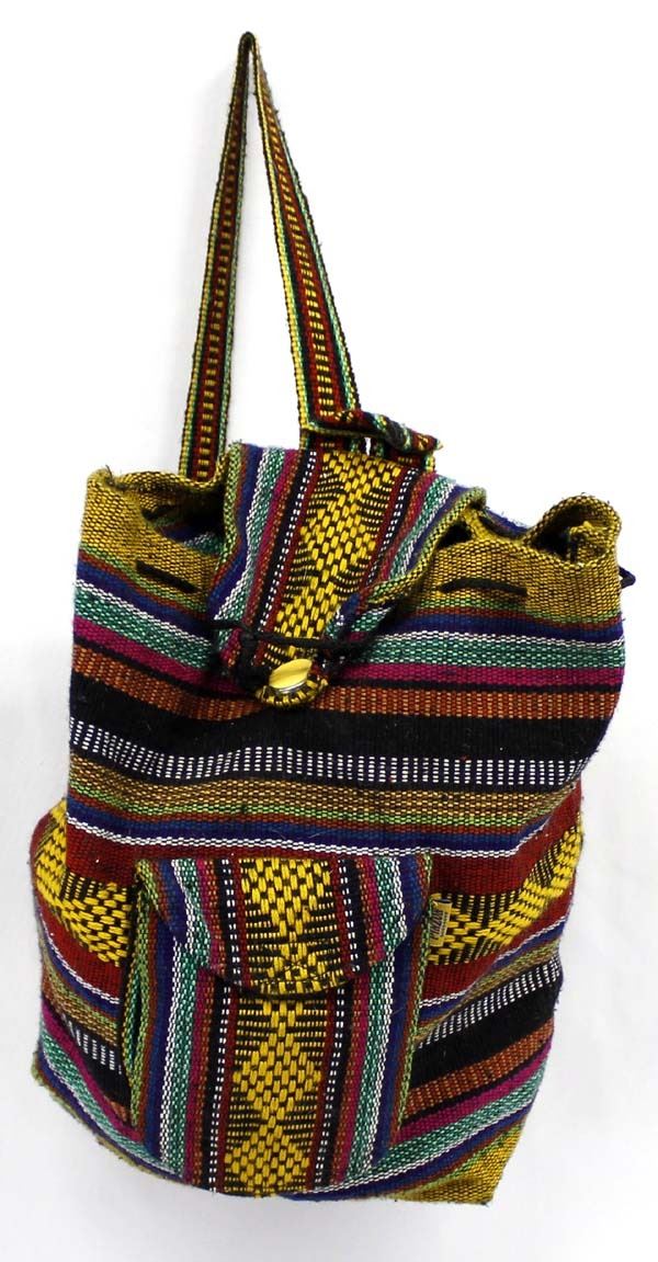 Mexican Woven Backpack by Pinzon, measures 12'' x 15'', button closure, beautiful vibrant colors