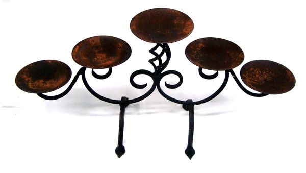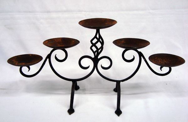 Mexican Wrought Iron Candleholder, 3 tiered, holds 5 candles, scrollwork, measures approx. 10''H x 21.5''L x 6.75''W
