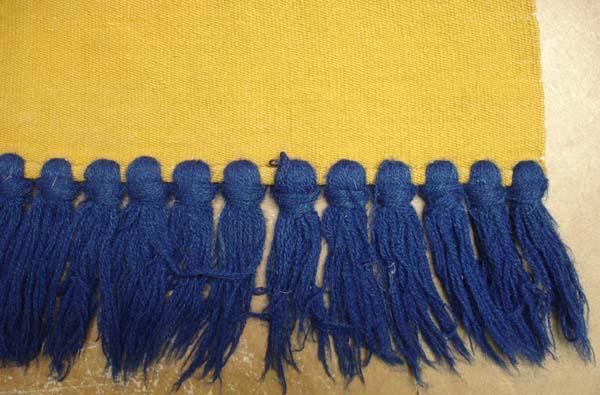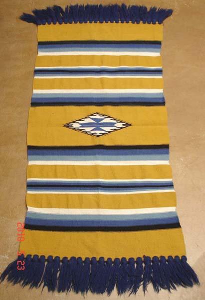 Mexican Zapotec Serrated Diamond Wool Tapestry. Measures 60''x30'' plus 5'' fringe. SHI $20.
