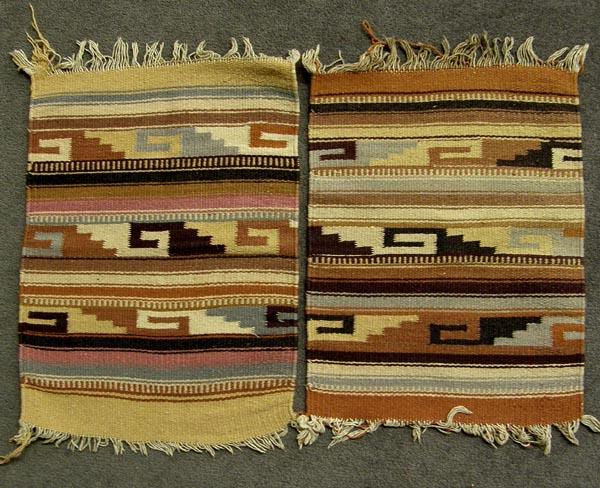 Pair of Zapotec Weavings, Llama Wool & Natural Dye. One has started to unravel on end. Measures approx. 21''x15.25''. Buyers Pay Actual Shipping and Handling Charges(see terms and conditions for more information).