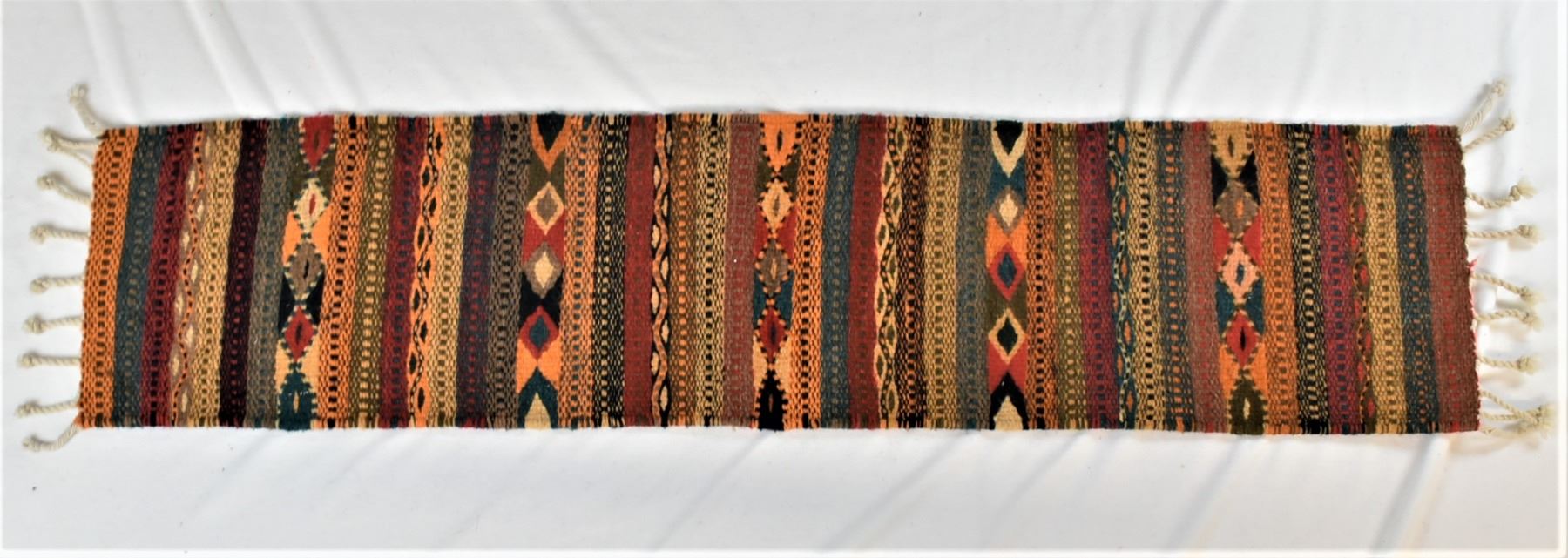 Mexican Zapotec Wool Fringed Table Runner, measures 9'' x 42'', gorgeous colors