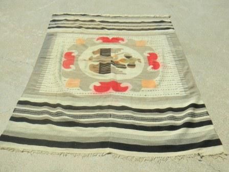 Large Mexican weaving with eagle and snake design. Some Fading. Shipping 20.00