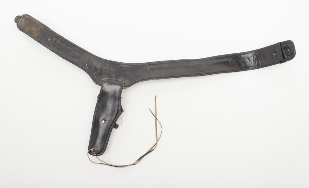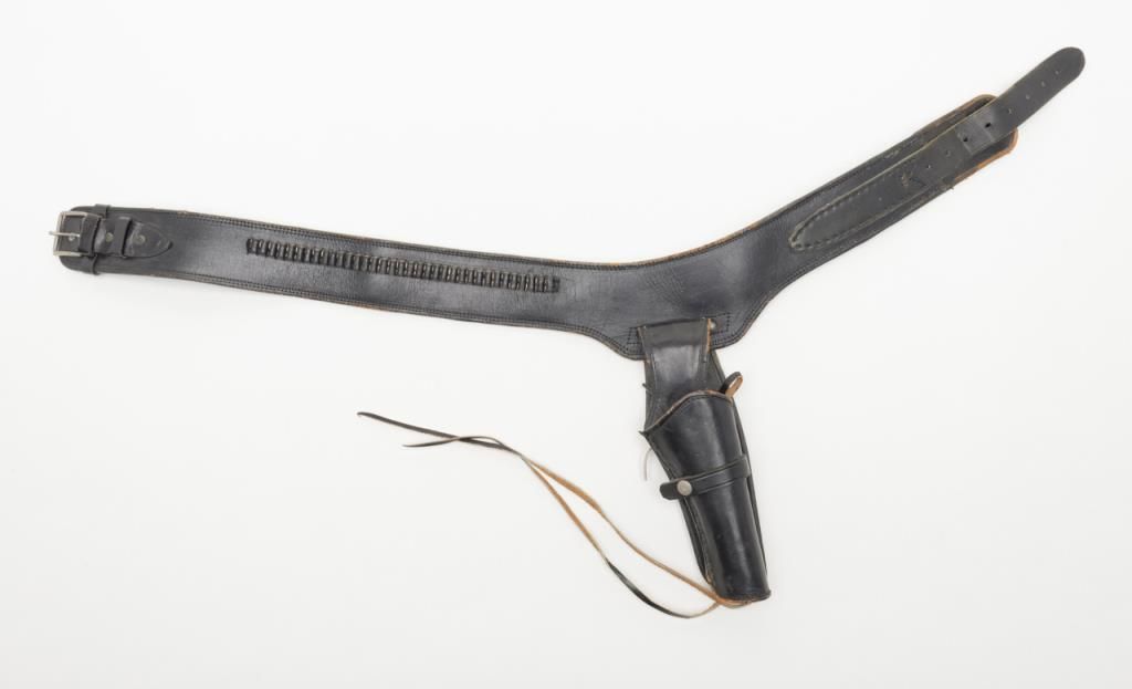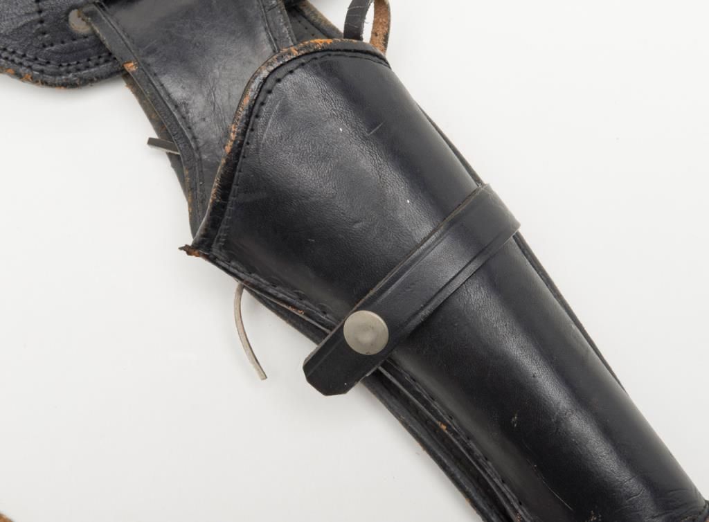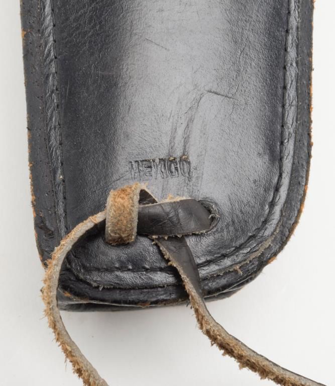 Mexican made leather heavy duty single loop holster and gun belt for a Single Action revolver. Est.: $50-$100.