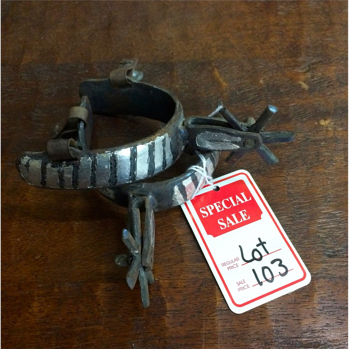 This pair of Mexican-style spurs is done in the Chihuahua tradition. Great as wall hangers or every day users.