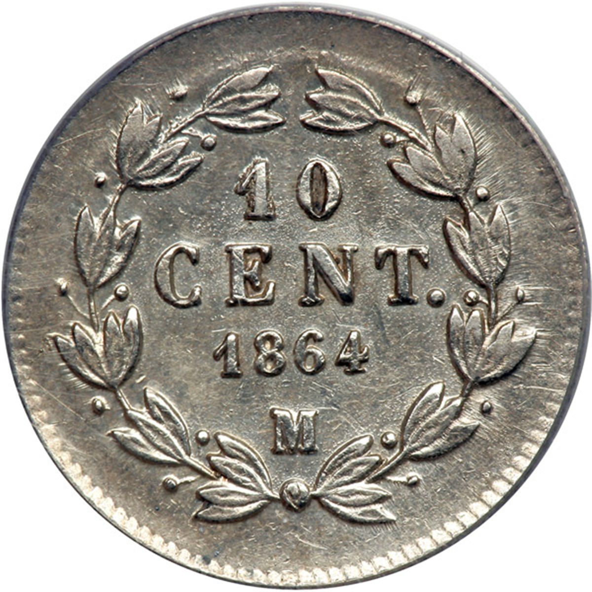 Mexico. 10 Centavos, 1864-M. KM-386.1. Maximilian, 1864-67. PCGS graded AU-50.