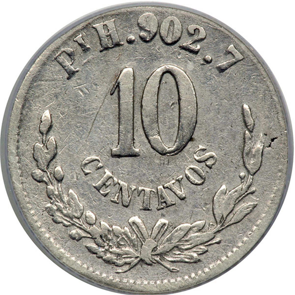 Mexico. 10 Centavos, 1875-Pi H. KM-403.9. Scarce date. PCGS graded VF-20.