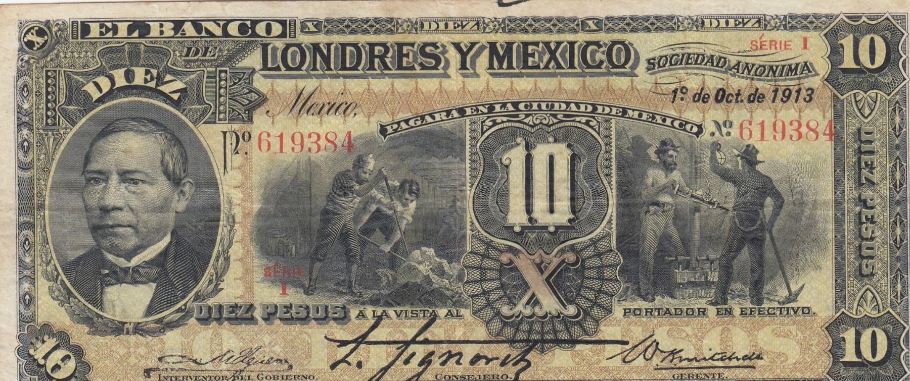 Mexico, 10 Pesos, 1913, VF, pS234u br/Banco De Londres Y Mexico, serial number: 619384