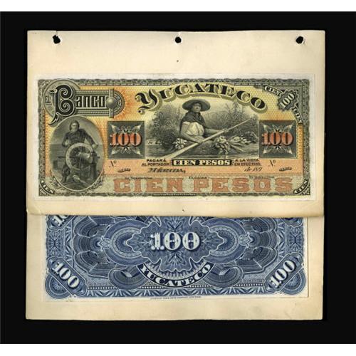 Mexico 100 Pesos Face and Back Proofs El Banco Yucateco