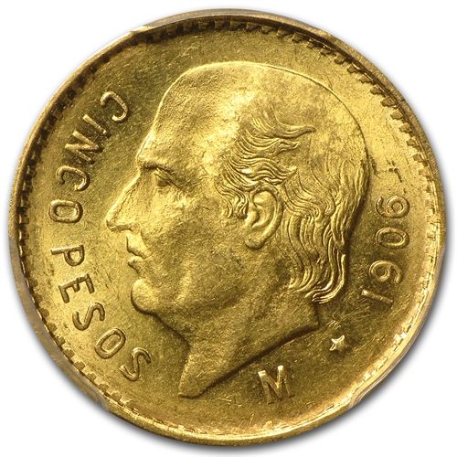 Mexico 1906 5 Pesos Gold MS-64 PCGS **|**|** Mexico 1906 5 Pesos Gold MS-64 PCGS ; MSRP: $600