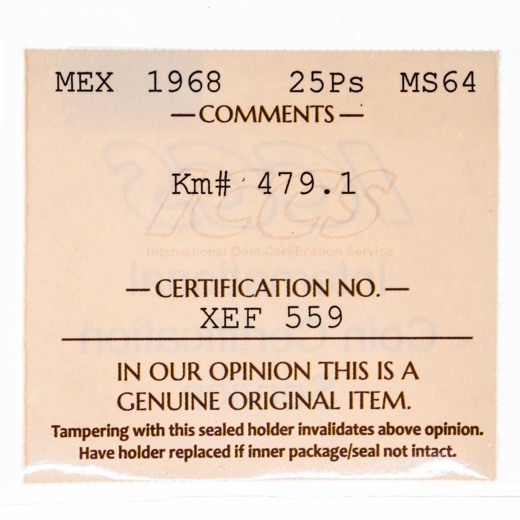 Mexico 1968 25PS MS64 ICCS