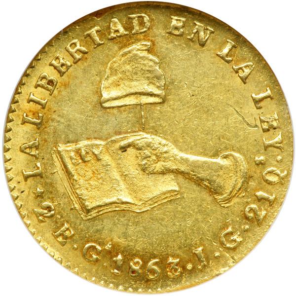 Mexico. 2 Escudos, 1863/1 Ga JG. NGC MS61
