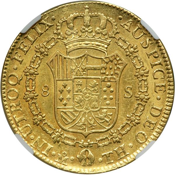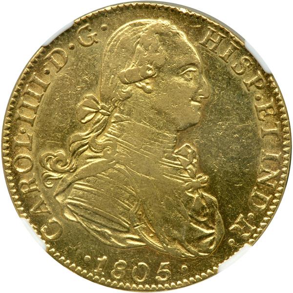 Mexico. 8 Escudos, 1805-Mo TH. Fr-43; KM-159. Charles IV. NGC graded Extremely Fine, Details (Excessive surface hairlines).