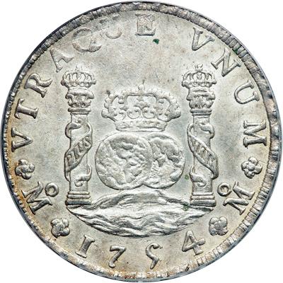 Mexico. 8 Reales, 1754-Mo MF. Eliz-37; KM-104.1. Pillar issue. Ferdinand VI. PCGS graded MS-61.