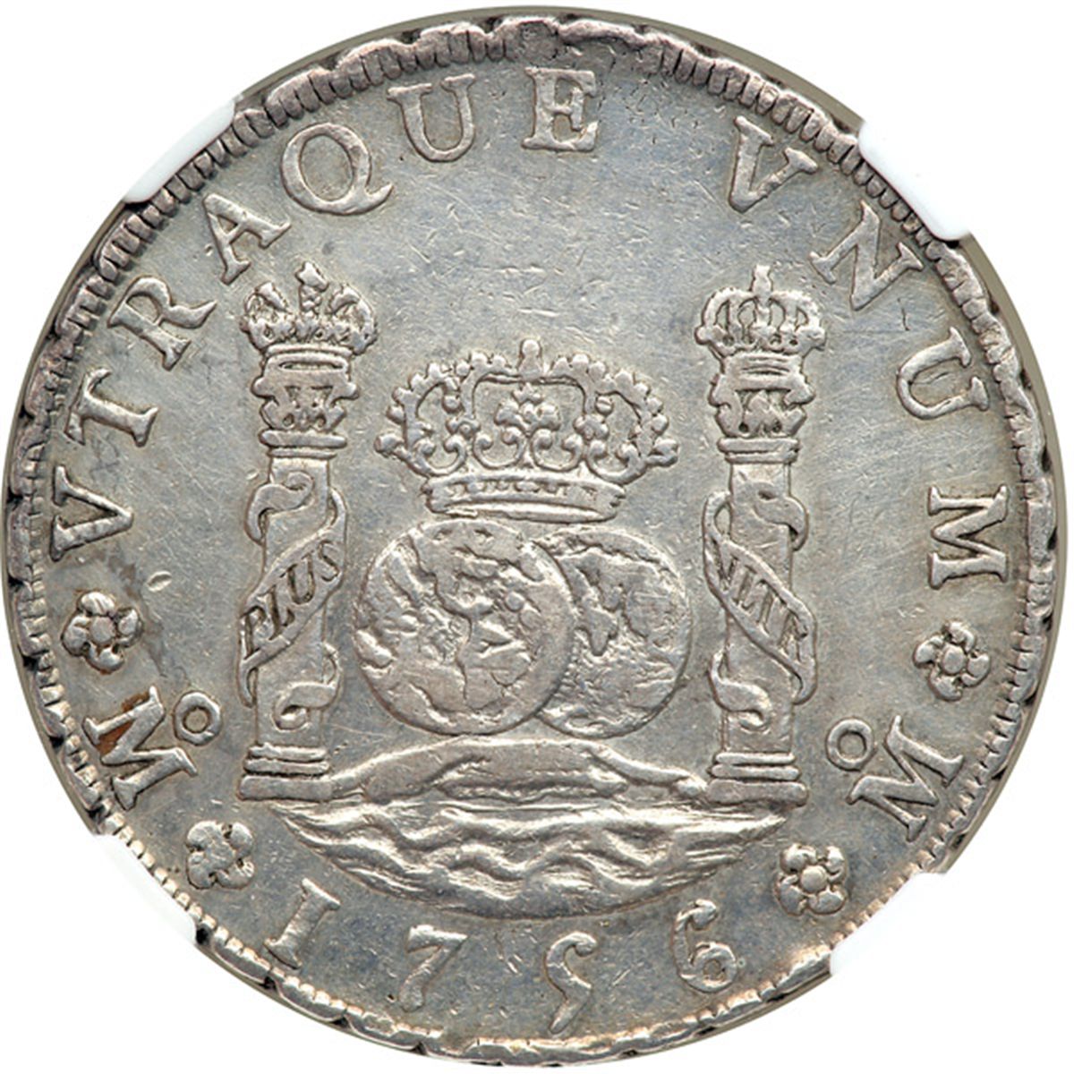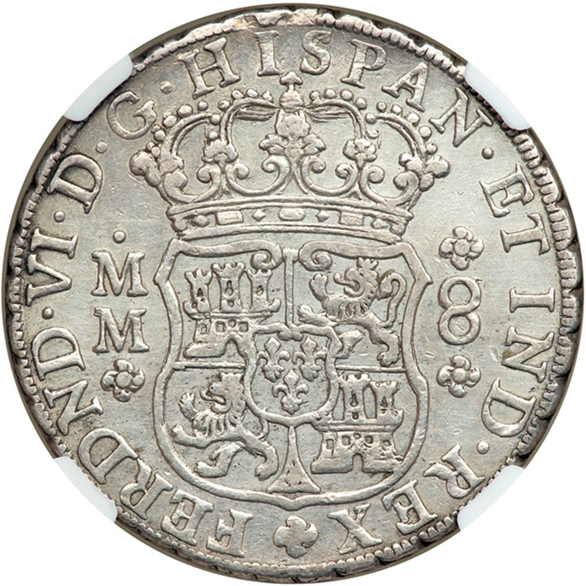 Mexico. 8 Reales, 1756-Mo MM. Eliz-43; KM-104.2. Ferdinand VI. Pillar issue. NGC graded Extremely Fine, Details (Repaired).