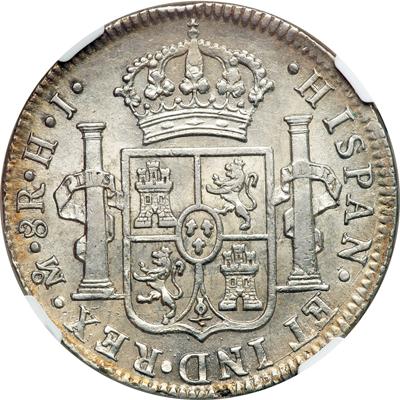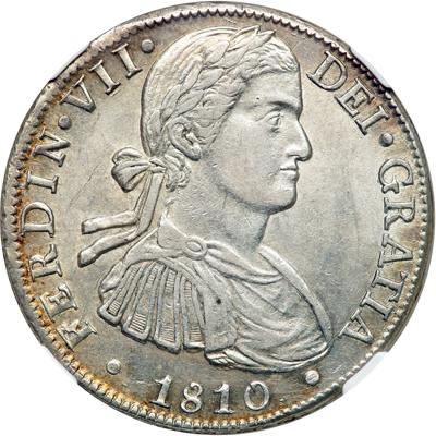 Mexico. 8 Reales, 1810-Mo HJ. Eliz-140; KM-110. Ferdinand VII. Armored bust right. In a new NGC 4 prong holder. NGC graded AU-58.
