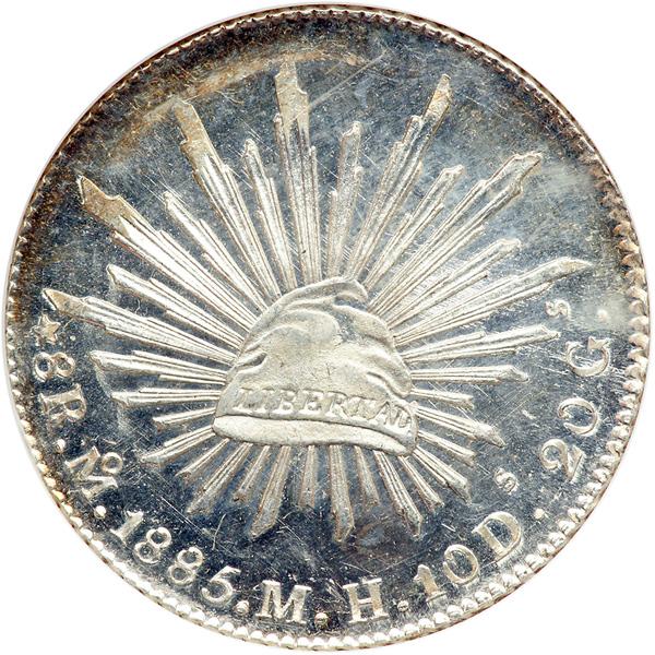 Mexico. 8 Reales, 1885-Mo MH. KM-377.10. Cap and Ray. Blazing brilliant mint luster. ANACS graded MS-65.