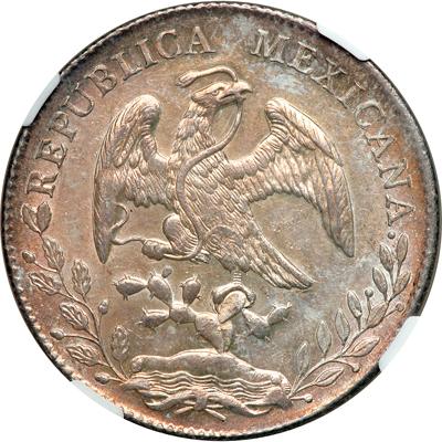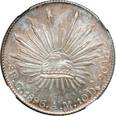 Mexico. 8 Reales, 1896-Cn AM. Eliz-361; KM-377.3; DP-Cn58. Cap and rays. NGC graded MS-63.
