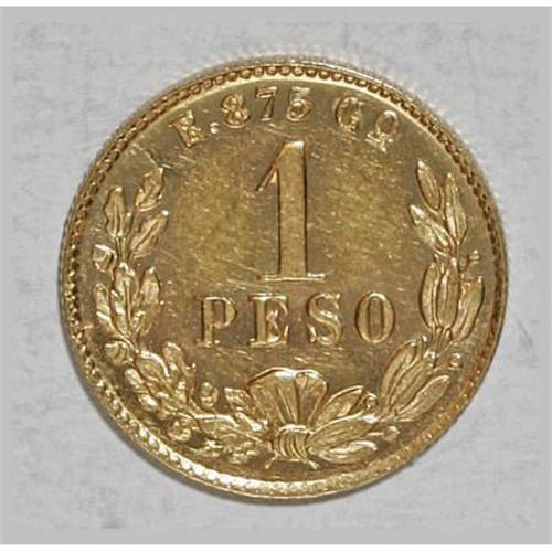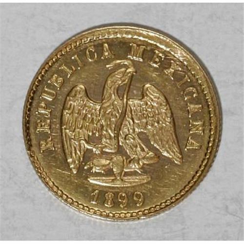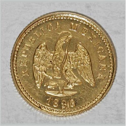 <B>A pair of Republic gold Pesos including:</B></I> 1896/5 Cn-M, prooflike UNC with light hairlines; and 1899 Go-R, Choice UNC.<BR><BR><b>Shipping:</b> Coins & Currency (<a target="_blank" href="http://www.heritageauctions.com/common/shipping.php">view shipping information</a>)