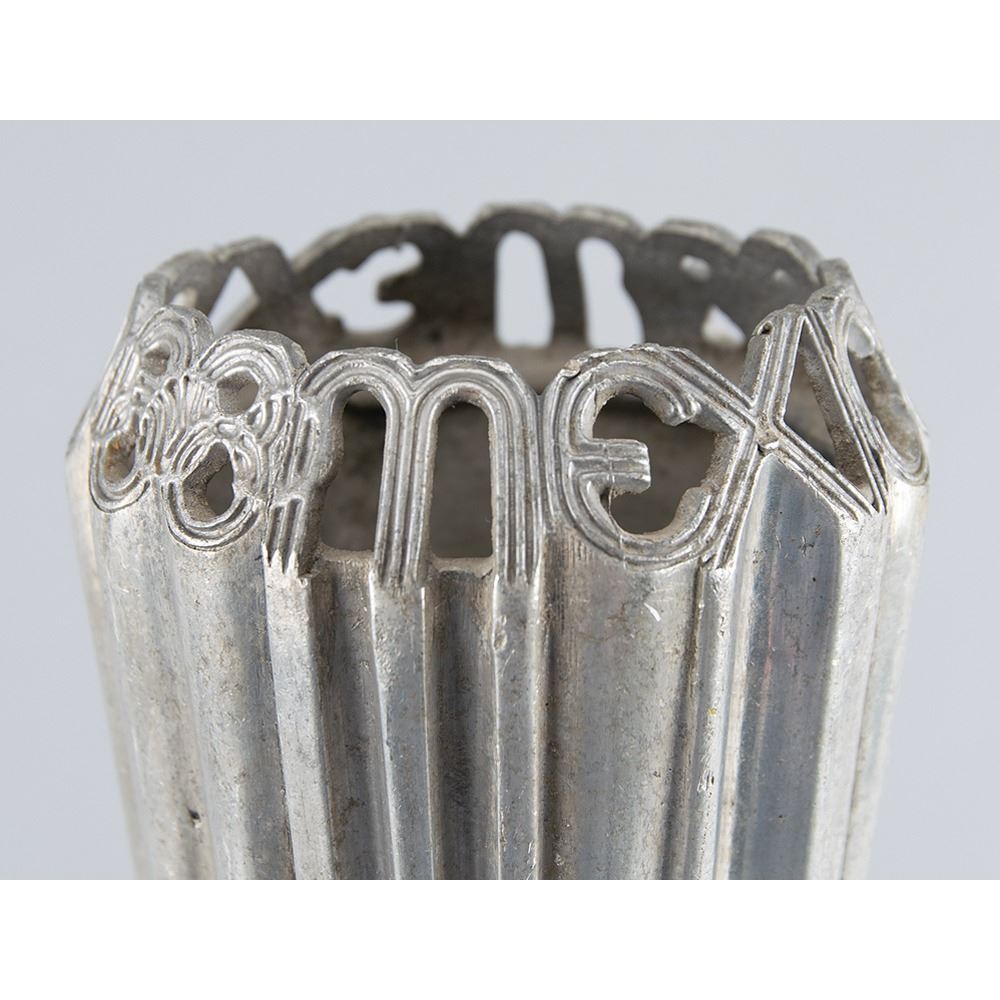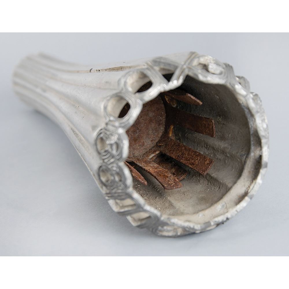 Appealing official 'Type 1' torch from the historic Mexico City 1968 Summer Olympics, which is comprised of white cast metal with a plain unadorned handle, measuring 17.25″ in length and 4.25″ at its widest point. The white cast metal body is fully grooved and the top features "Mexico 68" twice around the rim. The robust torch bears overall scattered wear, surface marks, and instances of pitting (apparently from the casting process).