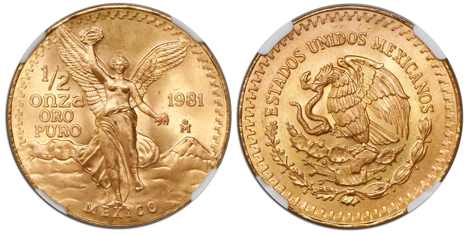 Mexico City, Mexico, 1/2 onza, 1981, encapsulated NGC MS 66.