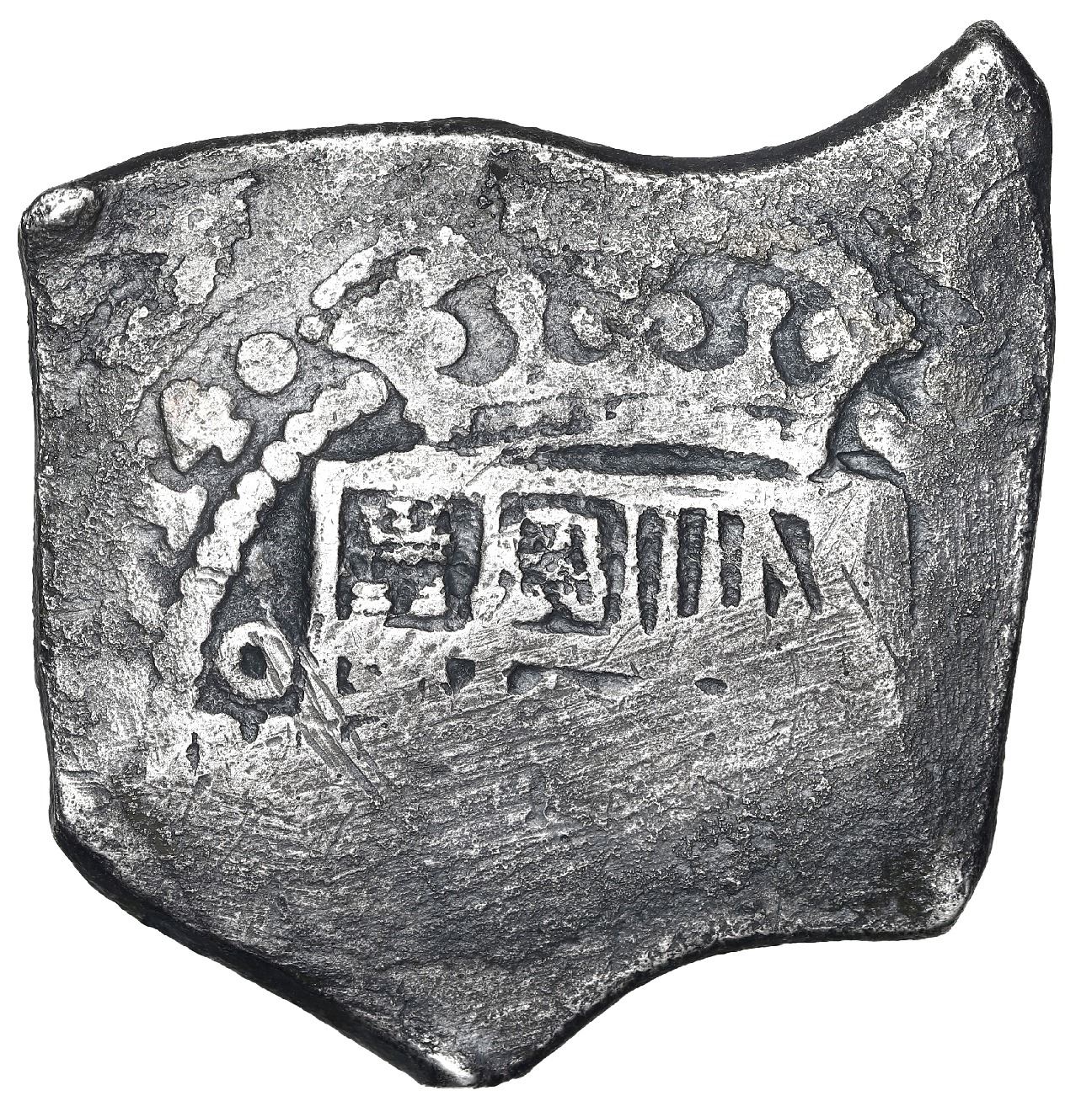 Mexico City, Mexico, cob 8 reales, 1714 J, new style obverse and reverse. S-M22; KM-47; Cal-1401. 26.70 grams. Bold 14 of date, full crown, and nearly full cross, with only traces of light corrosion and minor marks, deeply toned all over, interesting shape, with NGC tag (VF details). Recovered from: Spanish 1715 Fleet, east coast of Florida