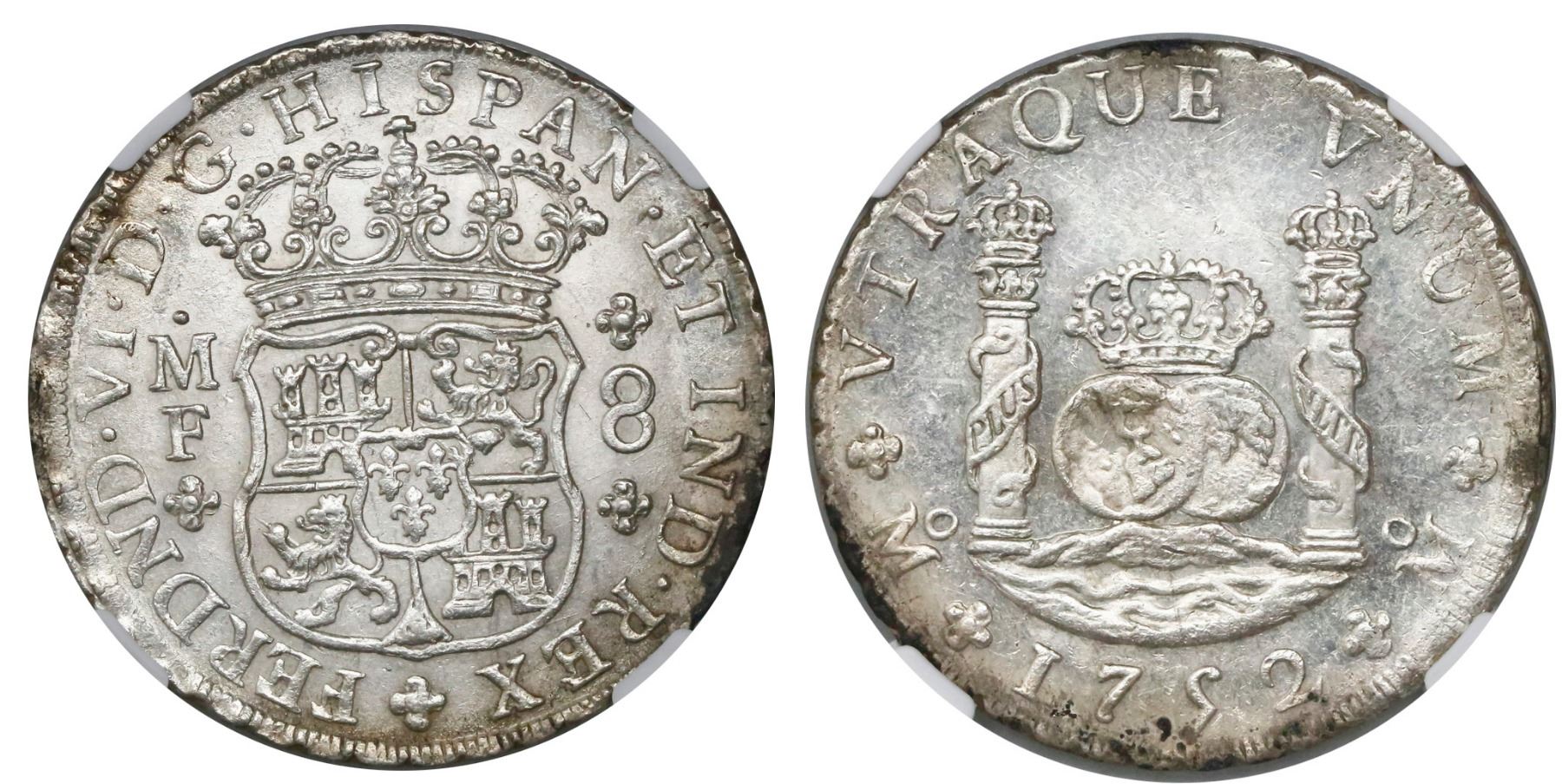 Mexico City, Mexico, pillar 8 reales, Ferdinand VI, 1752MF, encapsulated NGC MS 61.
