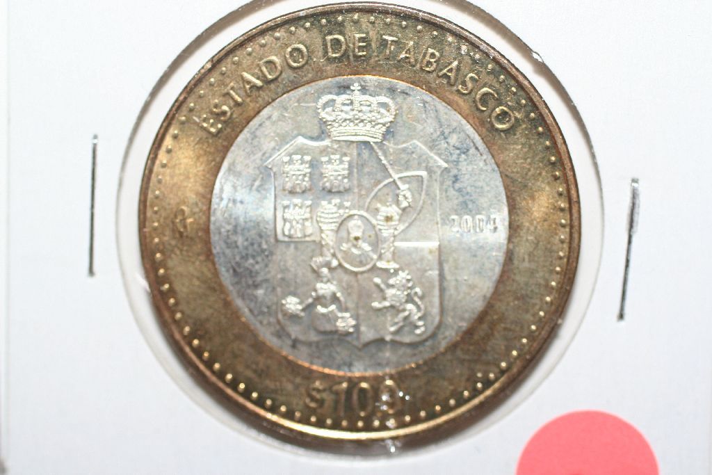 This lot is a 2004 mexico state of tabasco $100 pesos bi-metallic coin