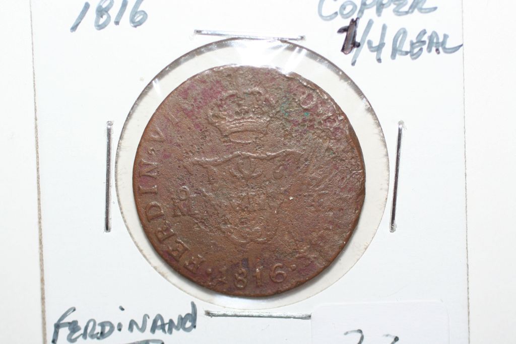 This lot is an 1816 mexico colonial 1/4 real copper coin