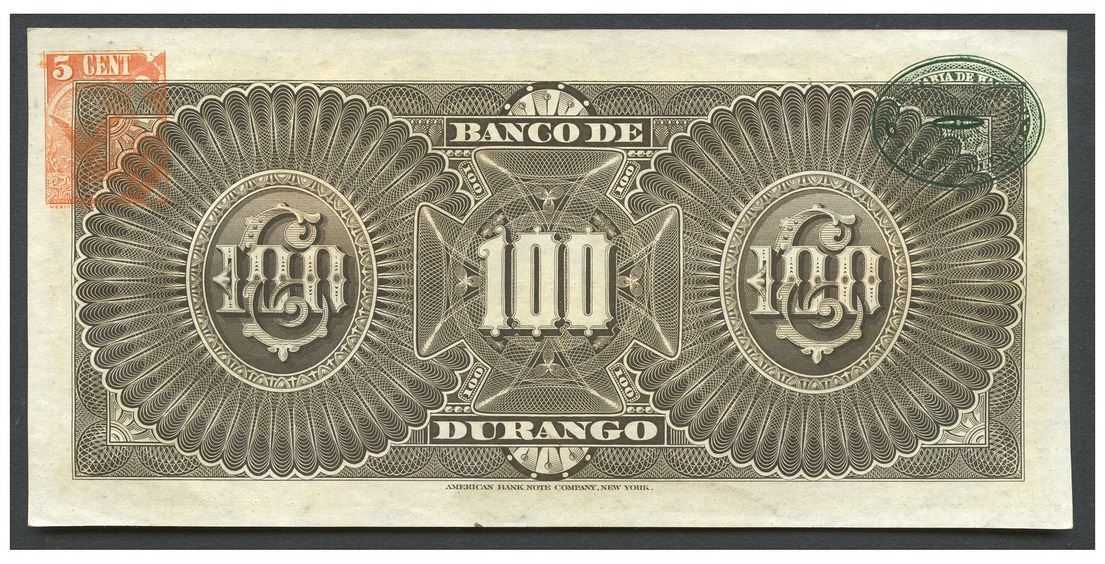 Mexico, El Banco de Durango, 100 pesos, February 1914, series J, serial 1009.