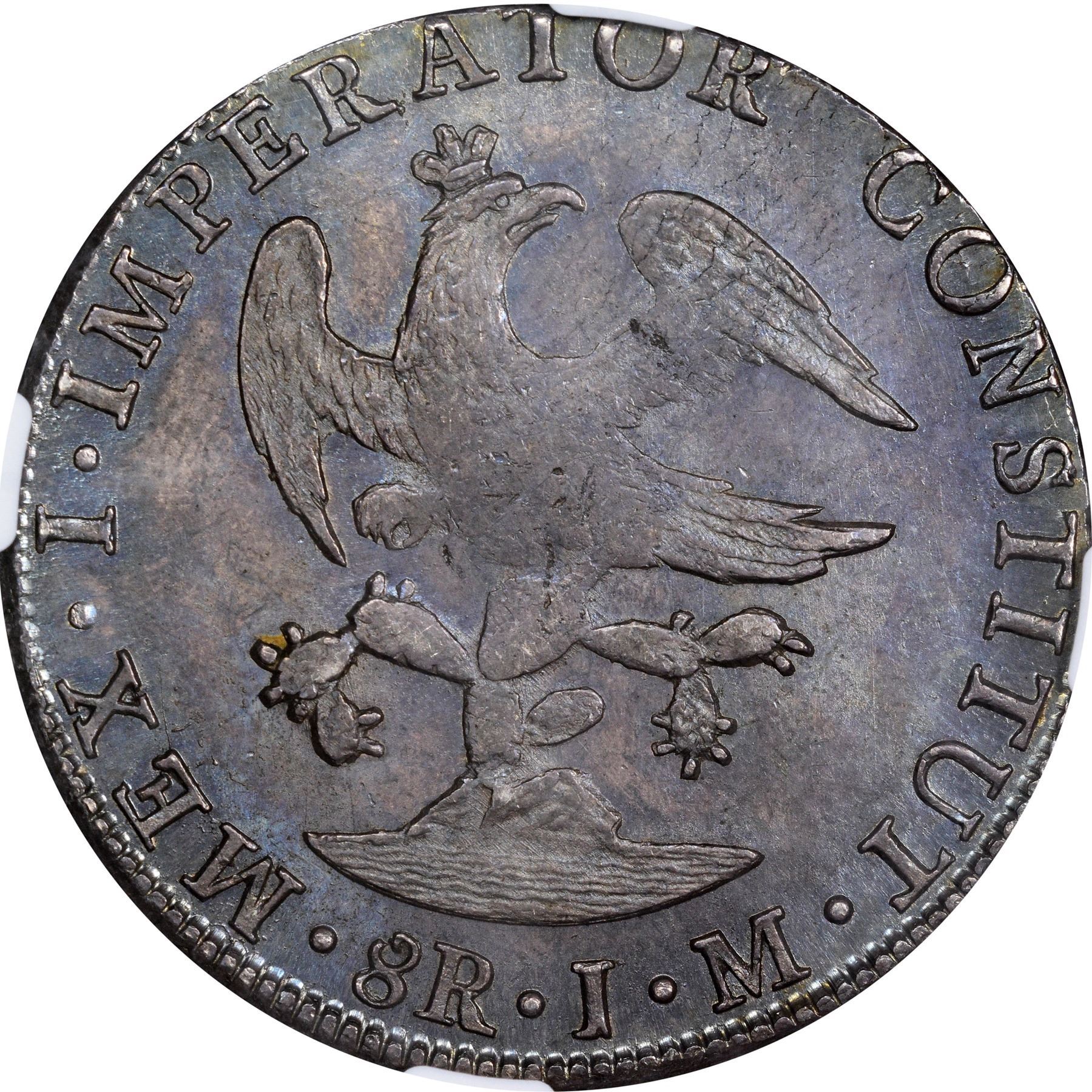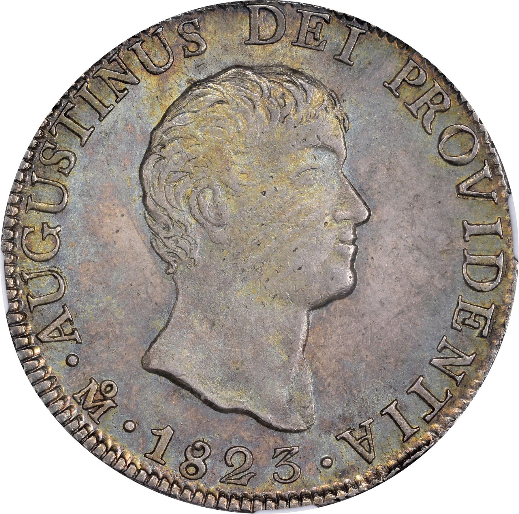 Title: Mexico. Empire of Iturbide. 1823 MO JM 8 Reales. Mexico City Mint. 8 R J.M. Below. Short Uneven Truncation. High 3, top of 3 in date even with top of 2. KM-310. Silver. MS-62 NGC.